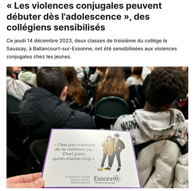• sensibilisation à l‘égalité filles-garçons et accompagnement des jeunes dans la lutte contre les violences intrafamiliales et faites aux femmes,